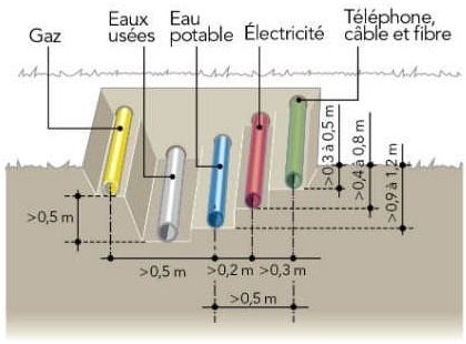 Dans nos EPLE, la plupart du temps c’est trop ancien pour bénéficier de cette bonne pratique. Il faut donc le signaler formellement en réunion de préparation de chantier, et s’assurer que c’est bien porté dans le PV. Vous devrez pouvoir dire quels sont les fluides qui passent peut-être, sans cette protection, sous les surfaces où un chantier est envisagé : de l’eau sanitaire, pluviale ou usée, de l’électricité (basse ou haute tension), du gaz...
