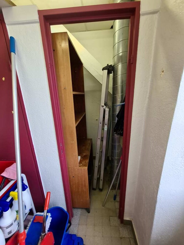 Des crochets ont été installés pour suspendre les balais et racloirs.